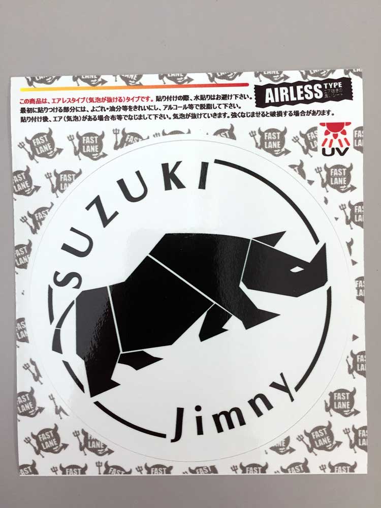 円形SUZUKI JIMNY サイのホワイト/モスグリーンステッカーです。