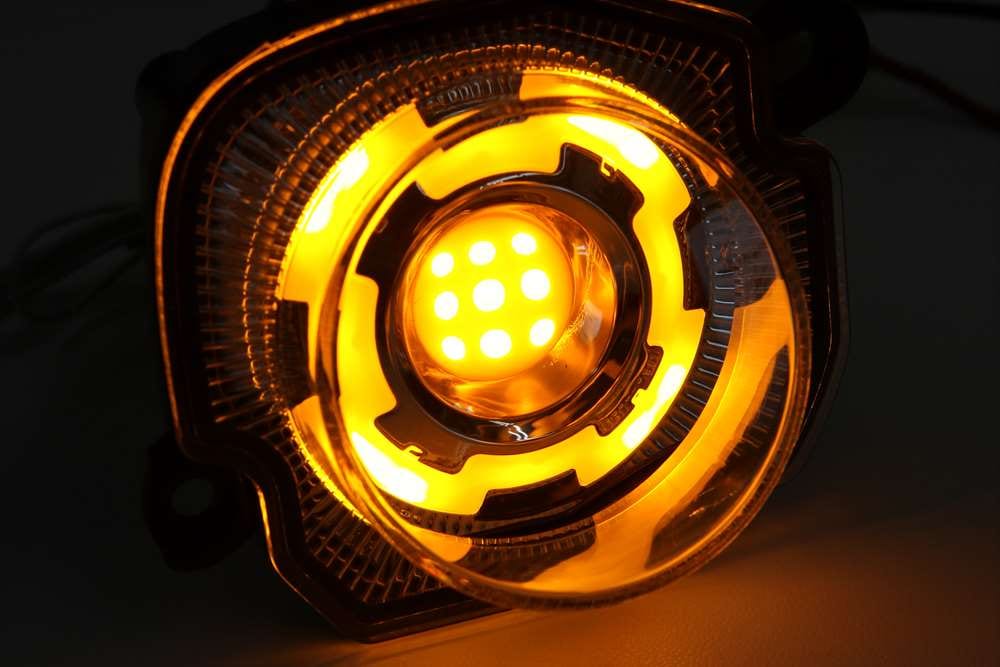 通常のウインカー点滅に加えて、スモールに連動するホワイト点灯もします。